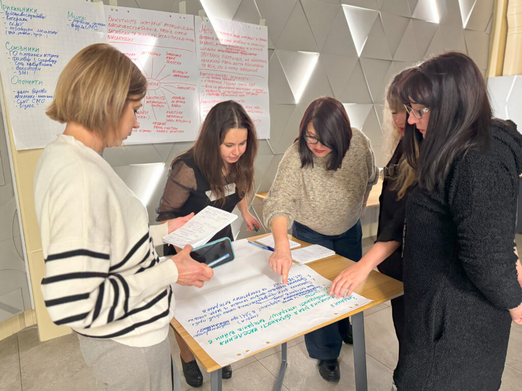 Друга частина тренінгу була присвячена розробці проєктів як складової адвокаційних кампаній. Працюючи в групах, учасниці розмірковували над такими проблемами, як: обмежена соціалізація дітей; обмежений доступ ветеранів і членів сімей військовослужбовців/виць до послуг; зниження рівня безпеки у громаді; погіршення якості освітніх послуг у громаді; погіршення ментального здоров’я жінок у громаді. Були розроблені ідеї проєктів, з реалізації яких могло б розпочатися вирішення зазначених проблем у громадах.